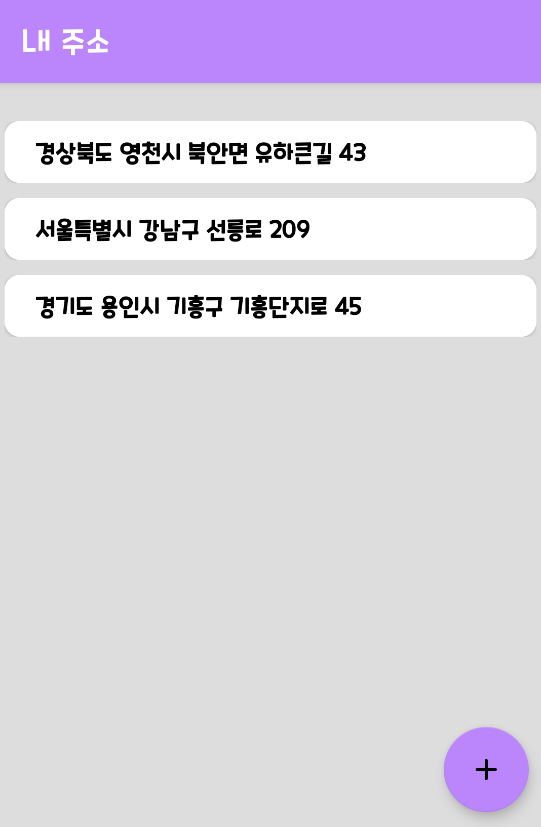 위 그림은 주소를 RecylcerView로 구현한 모습입니다. 각 TextView는 address를 저장하고 있습니다.